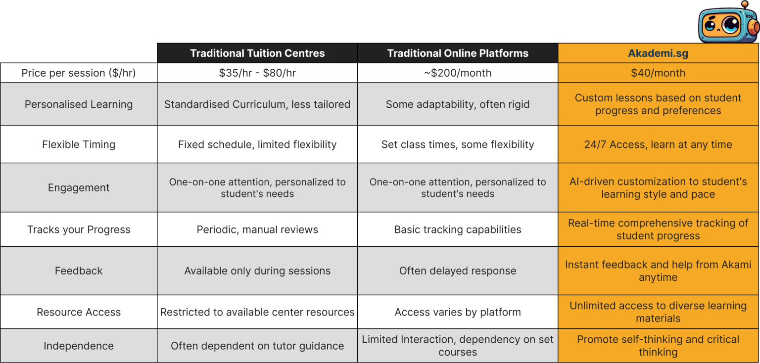 I came across Akademi thinking it was some gimmick but when i attended their Live Demo, it’s surprising that the ai could guide through each question for people with different level of knowledge. However, they only offer English Language for Secondary Level for now.